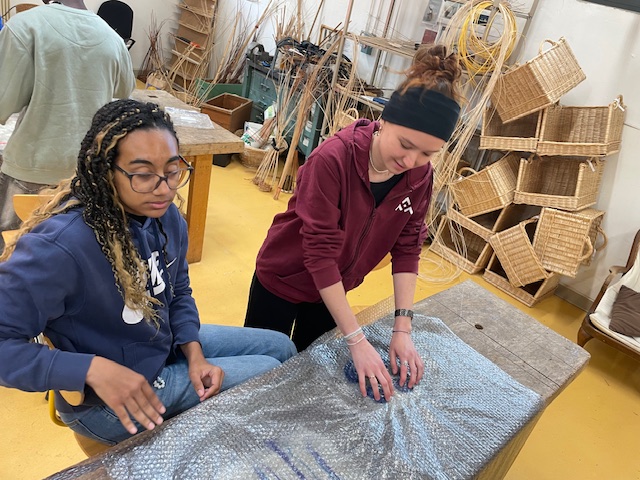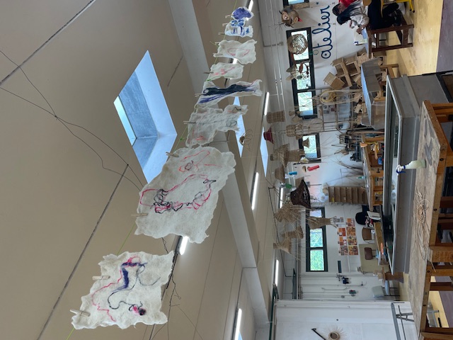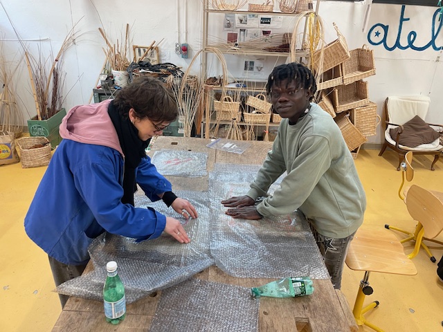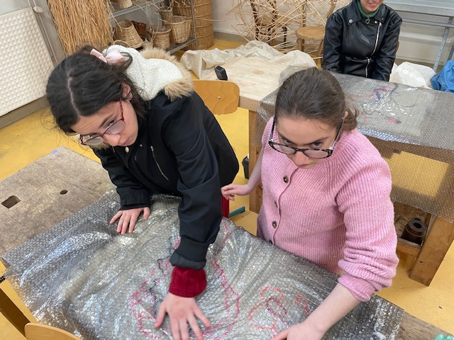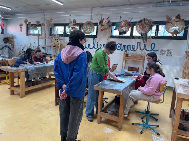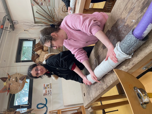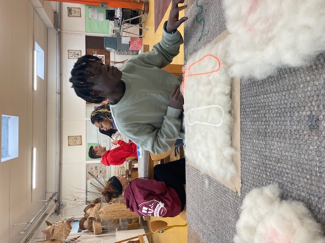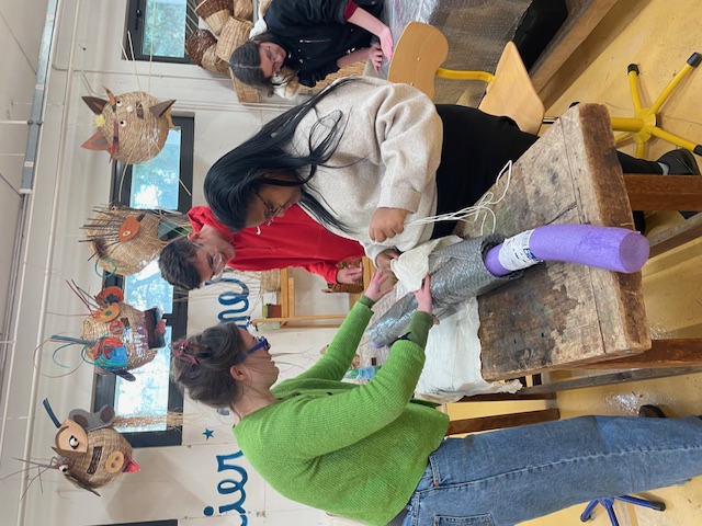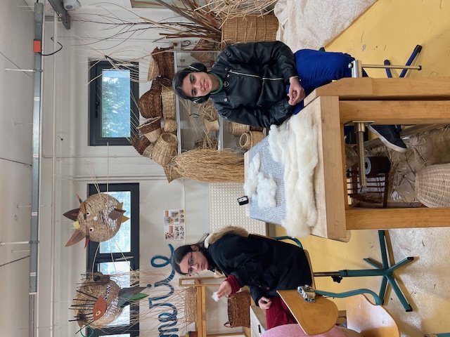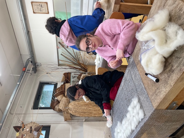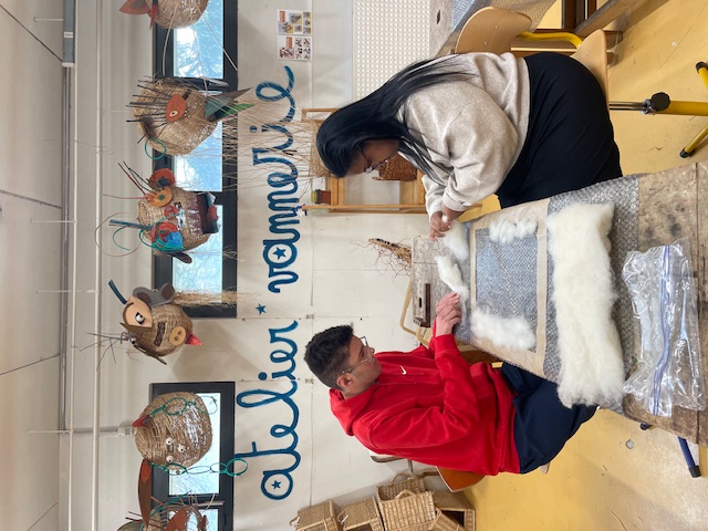 Les élèves de CAP vannerie continuent leur chef d’œuvre sur la thématique du BESTIAIRE. Juliette Hippert, plasticienne lyonnaise, est venue hier pour animer une séance autour de la laine feutrée pour concevoir des "moutons-paniers" !